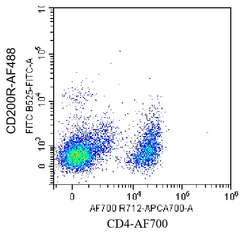 • Staining of normal human peripheral blood mononuclear cells (PBMCs) using AF488 CD200R Antibody (Clone: OX108) (Selleck Cat#: H2889) and AF700 CD4 Antibody. Analyzed data are derived from lymphocytes.