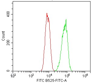 • Staining of fixed/permeabilized SKBR3 cell line cells using AF488 Anti-HER2/ErbB2 Antibody (Clone: 29D8) (Product No.: G3744) (green, red is blank control). Analyzed data are derived from total cells.