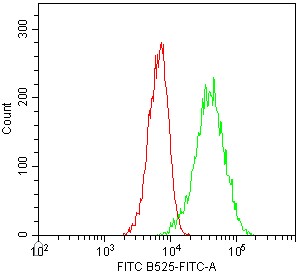 • Staining of Hela cell line cells using AF488 Anti-Human CD146 Antibody (Clone: P1H12) (Product No.: H1044) (green, red is blank control). Analyzed data are derived from live cells.