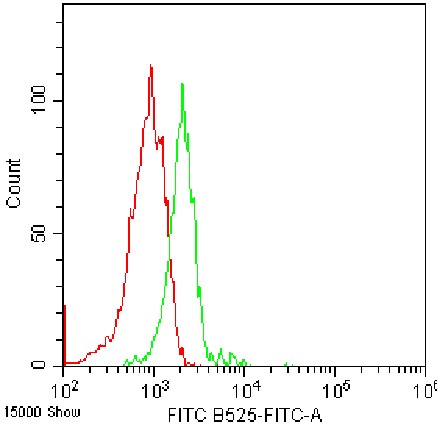 • Staining of normal human peripheral blood mononuclear cells (PBMCs) using AF488 Anti-Human CD166/ALCAM Antibody (Clone: 3A6) (Product No.: H2829) (Green, red is blank control). Analyzed data are derived from monocytes.
