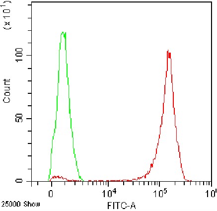 • Staining of normal human peripheral blood mononuclear cells (PBMCs) using AF488 Anti-Human CD45 Antibody (Clone: HI30) (Product No.: H0099) (red, green is unstained control). Analyzed data are derived from lymphocytes.
