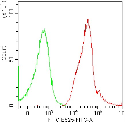 • Staining of HLA-A2 positive normal human peripheral blood mononuclear cells (PBMCs) using AF488 Anti-Human HLA-A2 Antibody (Clone: BB7.2) (Product No.: H1794) (red, green is blank control). Analyzed data are derived from monocytes.