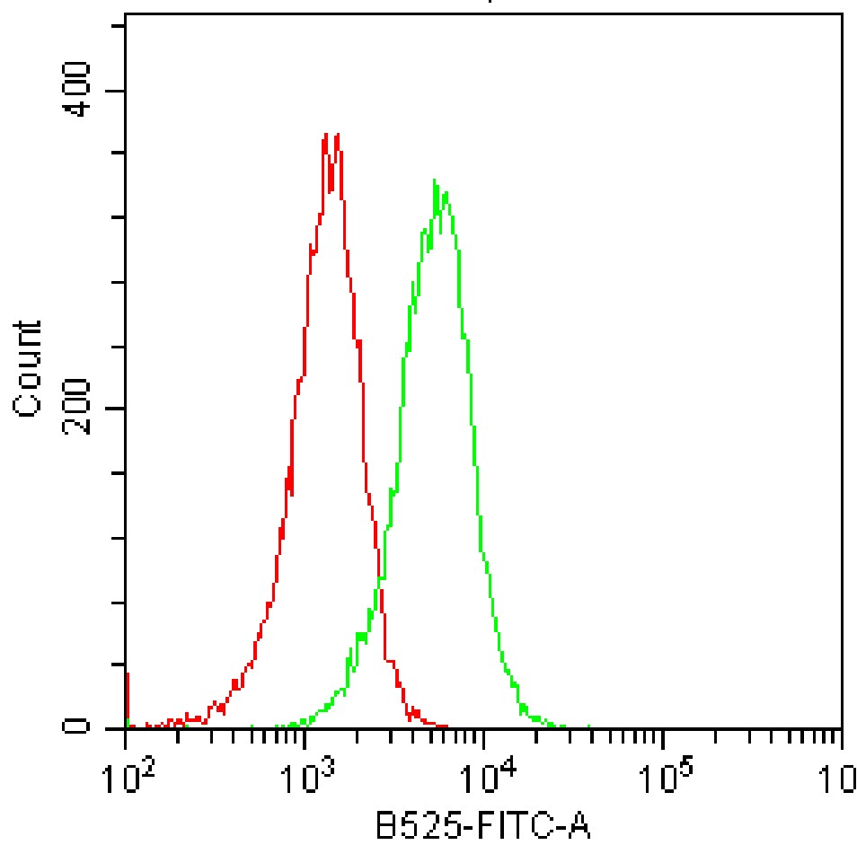 • Staining of K562 cell line cells using AF488 Human MICB Antibody [G5A11] (Selleck Cat.: H4449) (green, with red blank control). Analyzed data are derived from total cells.