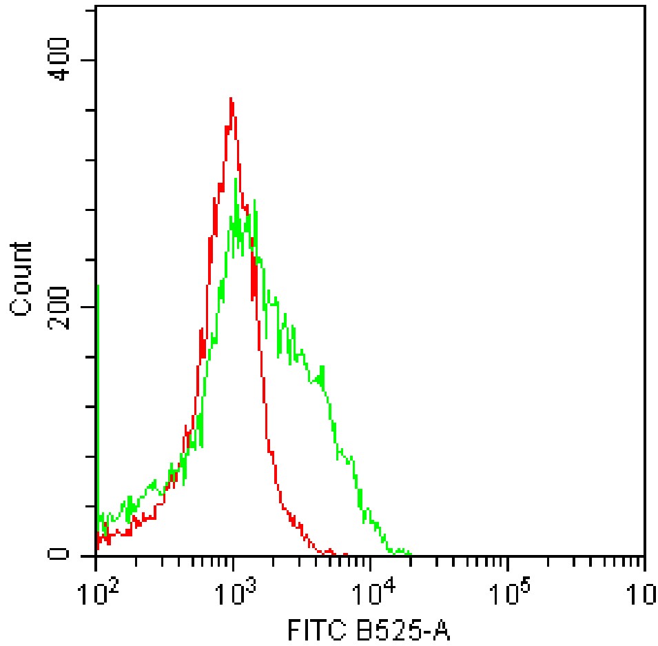 • Staining of fixed and permeabilized HEK-293F cells transfected with pCMV-S1PR1(human)-3×FLAG-Neo plasmid using AF488 Human S1P1/EDG-1 Antibody [218713] (Selleck Cat.: H3819) (green, with red blank control). Analyzed data are derived from total cells.