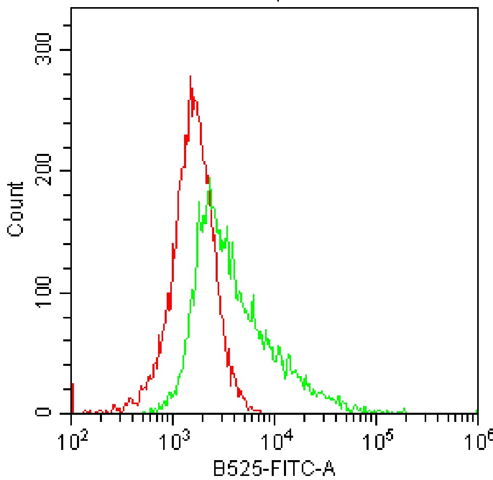 • Staining of fixed and permeabilized HEK-293F cells transfected with mouse IFN-γ plasmid using AF488 Mouse IFNγ Antibody (Clone: R4-6A2) (Selleck Cat.: G4179) (green, with red blank control). Analyzed data are derived from total cells.