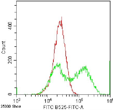 • Staining of fixed/permeabilized HEK-293F cell line cells transfected with pCMV-Il10(mouse)-3×FLAG-Neo plasmid (green) using AF488 Mouse IL-10 Antibody (Clone: JES5-16E3) (Catalog Number: G0789) and blank control (red). Analysis data derived from total cells.