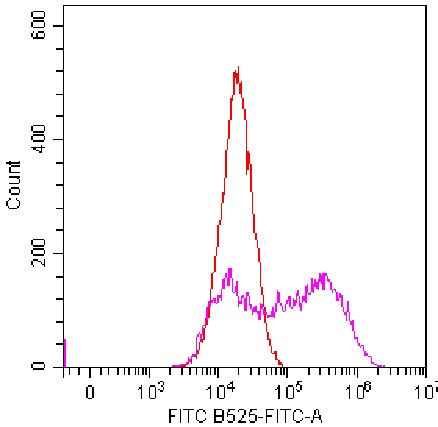 • Staining of fixed/permeabilized HEK-293F cells transfected with mouse IL-6 plasmid using AF488 Mouse IL-6 Antibody (Clone: MP5-20F3) (Product No.: G4284) (Magenta, Red: Blank Control). Analyzed data are derived from total cells.