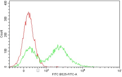 • Staining of ascites cells from C57BL/6 mice using AF488 Anti-Mouse/rat CD81 Antibody (Clone: Eat-2) (Product No.: G2034) (green, red is blank control). Analyzed data are derived from live lymphocytes.