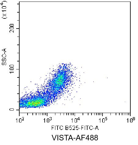 • Staining of normal human peripheral blood mononuclear cells (PBMCs) using AF488 VISTA Antibody (Clone: G23H7) (Selleck Cat#: G3924). Analyzed data are derived from live total cells.