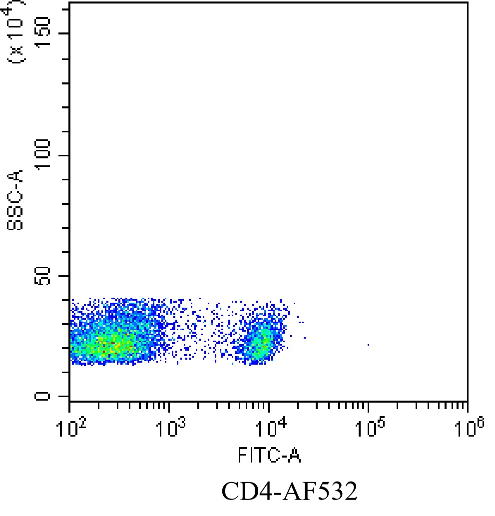 • Staining C57BL/6 spleen with AF532 CD4 Antibody (Clone: RM4-5) (Product Number: G4949). Analysis was performed on total live cells.