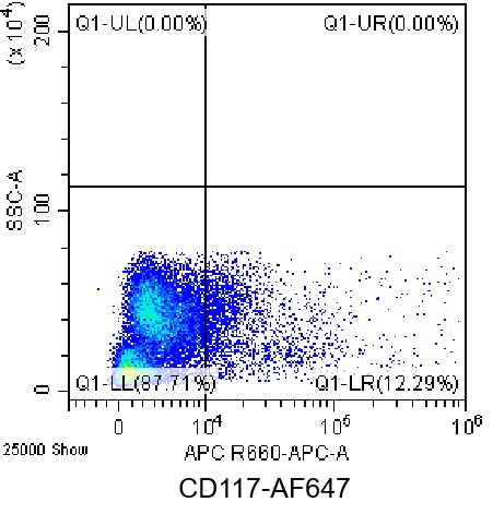 • Staining of bone marrow cells from C57BL/6 mice using AF647 Anti-CD117/c-Kit Antibody (Clone: 2B8) (Product No.: G4062). Analyzed data are derived from total live cells.