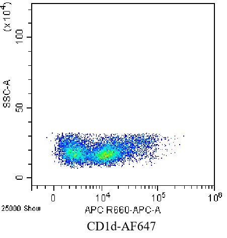 • Staining of splenic lymphocytes from C57BL/6 mice using AF647 Anti-CD1d Antibody (Clone: 1B1) (Product No.: G1722). Analyzed data are derived from live lymphocytes.