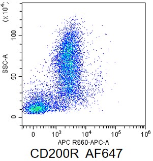 • Staining of ascites cells from C57BL/6 mice using AF647 Anti-CD200R Antibody (Clone: OX-110) (Product No.: G2352). Analyzed data are derived from live lymphocytes.