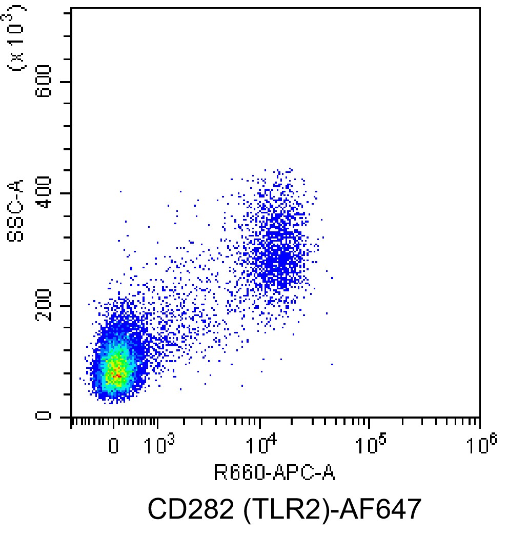 • Staining normal human peripheral blood mononuclear cells (PBMCs) with AF647 CD282/TLR2 Antibody (Clone: TL2.1) (Product Number: H3582). Analysis was performed on total live cells.