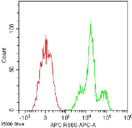 • Staining of normal human peripheral blood mononuclear cells (PBMCs) using AF647 Anti-Human CD11a Antibody (Clone: HI111) (Product No.: H3327) (green, red is blank control). Analyzed data are derived from total cells.