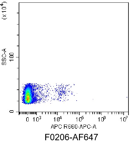 • Staining of normal human peripheral blood mononuclear cells (PBMCs) using AF647 Human CD123 Antibody (Clone: 9F5) (Selleck Cat#: H1107). Analyzed data are derived from lymphocytes.