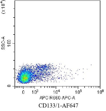 • Staining of normal human peripheral blood mononuclear cells (PBMCs) using AF647 Human CD133/PROM1 Antibody (Clone: AC133) (Selleck Cat#: H1002). Analyzed data are derived from lymphocytes.