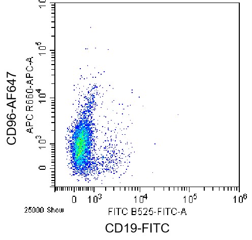 • Staining of normal human peripheral blood mononuclear cells (PBMCs) using AF647 Human CD96/Tactile Antibody (Clone: NK92.39) (Selleck Cat#: H2067) and FITC CD19 Antibody. Analyzed data are derived from lymphocytes.