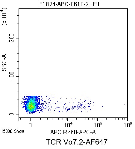 • Staining of normal human peripheral blood mononuclear cells (PBMCs) using AF647 Anti-Human TCR Vα7.2 Antibody (Clone: 3C10) (Product No.: H1857). Analyzed data are derived from lymphocytes.