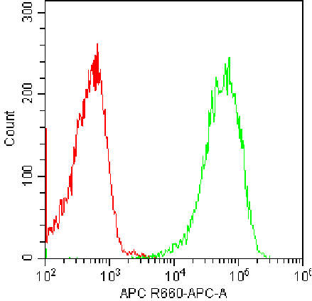 • Intracellular staining of fixed/permeabilized Jurkat cells using AF647 LAMP2 Antibody (Clone: H4B4) (Selleck CatNo.: G2667) (Green, Red: Blank Control). Analyzed data are derived from total live cells.