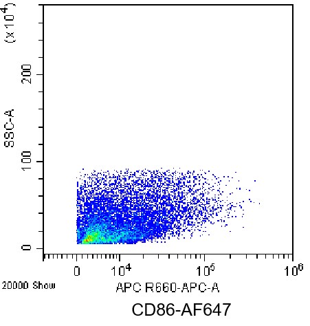 • Staining of fixed/permeabilized HEK-293F cells transfected with pCMV-Cd86(mouse)-3×FLAG-Neo plasmid using AF647 Anti-Mouse CD86 Antibody (Clone: GL1) (Product No.: G4422). Analyzed data are derived from total cells.