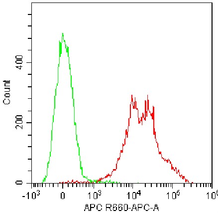 • Staining of splenic lymphocytes from C57BL/6 mice using AF647 Anti-Mouse LFA-1α/CD11a Antibody (Clone: M17/4) (Product No.: G4317) (red, green is blank control). Analyzed data are derived from live lymphocytes.