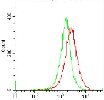 • Staining of HepG2 cell line cells permeabilized using Foxp3/Transcription Factor Staining Buffer Set (Permeabilization Buffer) using AF647 Anti-Neuron-specific beta-III Tubulin Antibody (Clone: TuJ-1) (Product No.: H4227) (Red, green is blank control). Analyzed data are derived from total cells.
