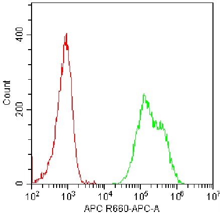 • Staining of Hela cells stimulated with 50uM Etoposide (Selleck Cat# S1225) for 30min using AF647 Phospho-Histone H2A.X (Ser139) Antibody (Clone: E5F13) (Product No.: G3852) (Green, Red: Blank Control). Analyzed data are derived from total live cells.