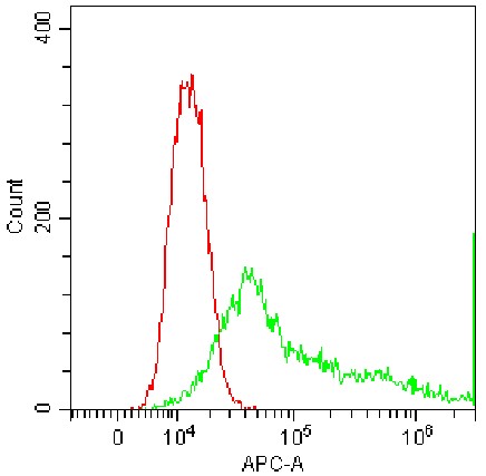 • Staining of permeabilized HEK-293F cells transfected with pLV3-CMV-Tnf(mouse)-CopGFP-Puro plasmid using fixation/permeabilization buffer with AF647 anti-mouse TNF-α Antibody (Clone: MP6-XT22) (Selleck Cat.No: G0342) (green, red is unstained control). Analysis data derived from total cells.