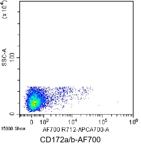 • Staining of normal human peripheral blood mononuclear cells (PBMCs) using AF700 Anti-Human CD172a/b Antibody (Clone: SE5A5) (Product No.: H2107). Analyzed data are derived from lymphocytes.