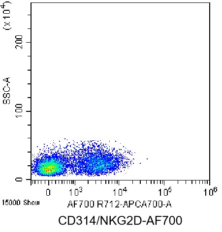 • Staining of normal human peripheral blood mononuclear cells (PBMCs) using AF700 Anti-Human CD314/NKG2D Antibody (Clone: 1D11) (Product No.: H1402). Analyzed data are derived from lymphocytes.