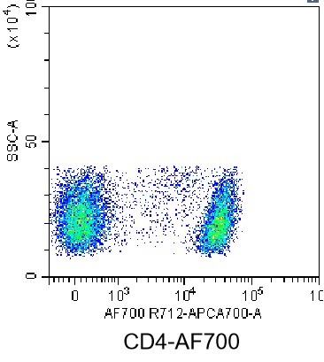 • Staining of normal human peripheral blood mononuclear cells (PBMCs) using AF700 Anti-Human CD4 Antibody (Clone: L200) (Product No.: H0052). Analyzed data are derived from lymphocytes.