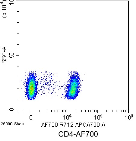 • Staining of normal human peripheral blood mononuclear cells (PBMCs) using AF700 Anti-Human CD4 Antibody (Clone: RPA-T4) (Product No.: H0037). Analyzed data are derived from lymphocytes.