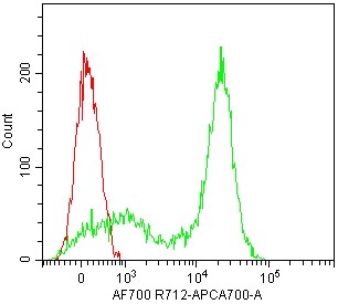 • Staining of normal human peripheral blood mononuclear cells (PBMCs) using AF700 Anti-Human CD5 Antibody (Clone: UCHT2) (Product No.: H3982) (Green, red is blank cells). Analyzed data are derived from lymphocytes.