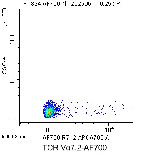 • Staining of normal human peripheral blood mononuclear cells (PBMCs) using AF700 Anti-Human TCR Vα7.2 Antibody (Clone: 3C10) (Product No.: H1852). Analyzed data are derived from lymphocytes.