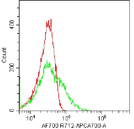 • Staining of fixed/permeabilized HEK-293F cells transfected with human IL-6 plasmid using AF700 IL-6 Antibody (Clone: MQ2-13A5) (Selleck CatNo.: G1927) (Green, Red: Blank Control). Analyzed data are derived from total cells.