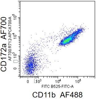 • Staining of bone marrow cells from C57BL/6 mice using AF488 Anti-Mouse CD64 Antibody and AF700 Anti-Mouse CD172a/SIRPα Antibody (Clone: P84) (Product No.: G3007). Analyzed data are derived from live lymphocytes.