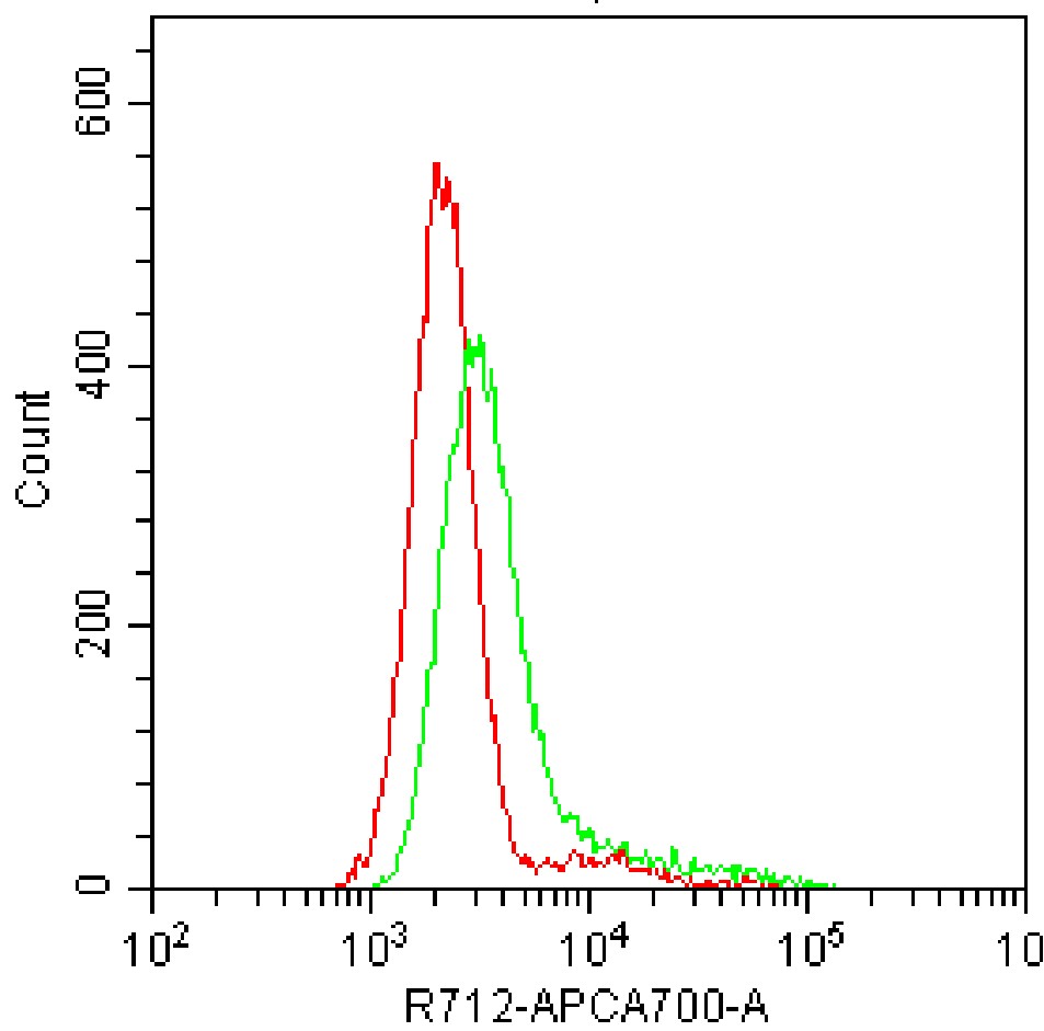 • Staining HEK-293F cells transfected with mouse IFN-γ plasmid and fixed/permeabilized with fixation/permeabilization buffer with AF700 Mouse IFNγ Antibody (Clone: R4-6A2) (Product Number: G4177) (green, red is unstained control). Analysis was performed on total cells.