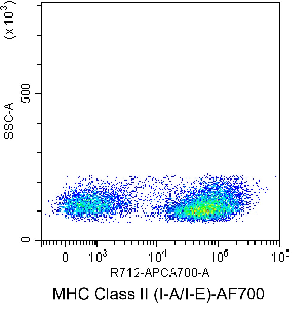 • Staining C57BL/6 spleen with AF700 mouse MHC Class II Antibody (Clone: M5/114) (Product Number: G4657). Analysis was performed on total live cells.