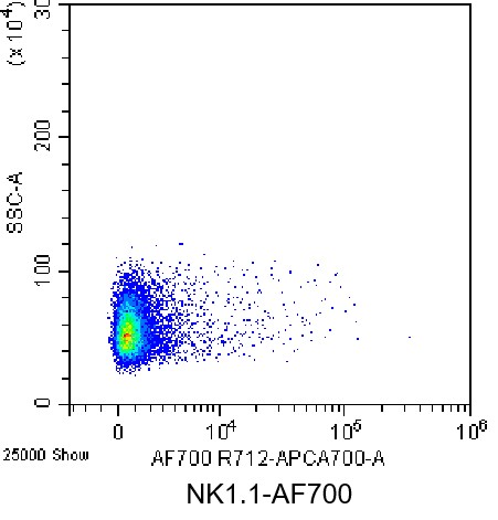 • Staining of splenic lymphocytes from C57BL/6 mice using AF700 Anti-Mouse NK1.1 Antibody (Clone: PK136) (Product No.: G4252). Analyzed data are derived from live lymphocytes.