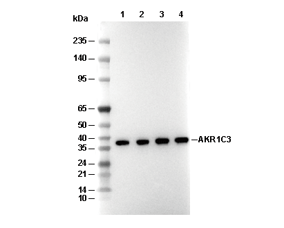 AKR1C3 Antibody [M22N11] 可检测内源性 AKR1C3 总蛋白水平。