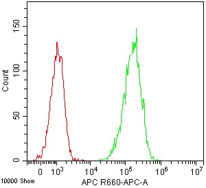 • Staining of bEnd.3 cell line cells using APC Anti-CD105/Endoglin Antibody (Clone: MJ7/18) (Product No.: G3453) (green, red is blank control). Analyzed data are derived from live cells.