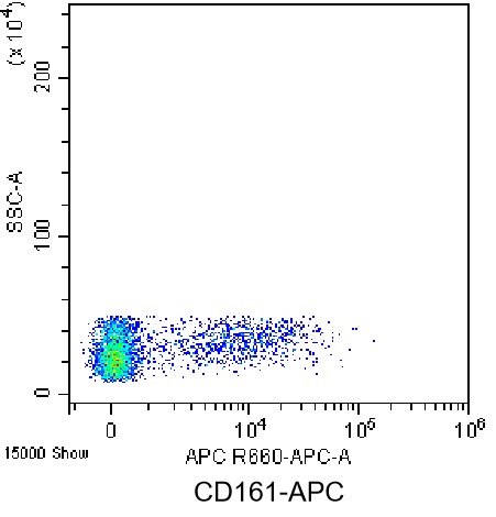 • Staining of normal human peripheral blood mononuclear cells (PBMCs) using APC Anti-CD161 Antibody (Clone: HP-3G10) (Product No.: H0333). Analyzed data are derived from lymphocytes.