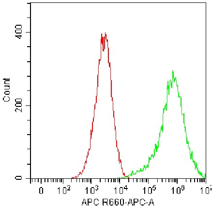 • Staining of bEnd-3 cell line cells using APC CD201/EPCR Antibody (Clone: B2B15) (Selleck CatNo.: G2268) (Green, Red: Blank Control). Analyzed data are derived from total live cells.
