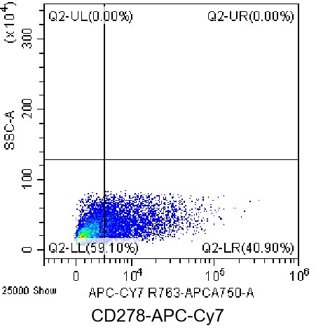 • Staining of mouse splenocytes stimulated with Concanavalin A for 2 days using APC-cy7 Anti-CD278 Antibody (Clone: C398.4A) (Product No.: G1101). Analyzed data are derived from total cells.
