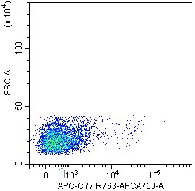 • Staining of normal human peripheral blood mononuclear cells (PBMCs) using APC-cy7 Anti-FCER1A Antibody (Clone: AER-37) (Product No.: H0771). Analyzed data are derived from lymphocytes.