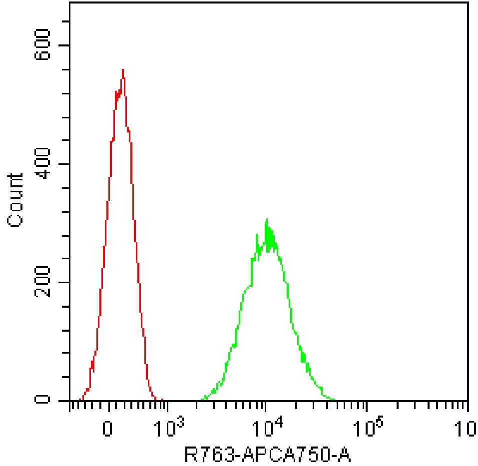 • Staining of SK-N-MC cell line cells using APC-Cy7 Human CD271/NGFR Antibody (Clone: ME20.4) (Product No.: H4116) (red, with green blank control). Analyzed data are derived from total cells.