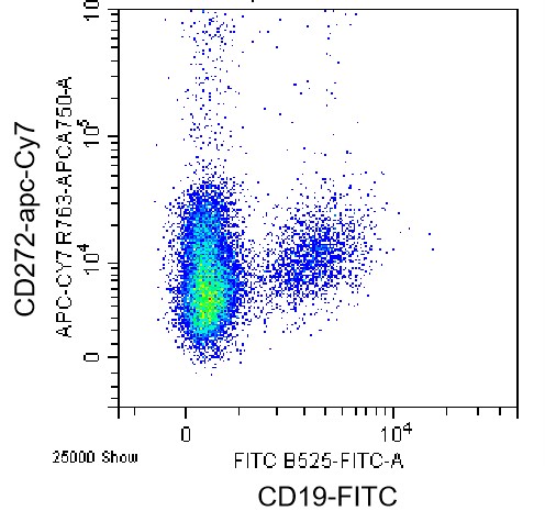 • Staining of normal human peripheral blood mononuclear cells (PBMCs) using APC-Cy7 Human CD272/BTLA Antibody (Clone: MIH26) (Selleck Cat#: H1551) and FITC CD19 Antibody. Analyzed data are derived from lymphocytes.