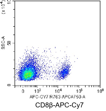 • Staining of C57BL/6 mouse splenic lymphocytes using APC-Cy7 Mouse CD8β Antibody (Clone: 53-5.8) (Catalog Number: G4851). Analysis data derived from live lymphocytes.
