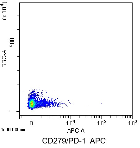 • Staining of normal human peripheral blood mononuclear cells (PBMCs) using Anti-CD3 Antibody and APC Anti-Human CD279/PD-1 Antibody (Clone: EH12.2H7) (Product No.: H0438). Analyzed data are derived from lymphocytes.